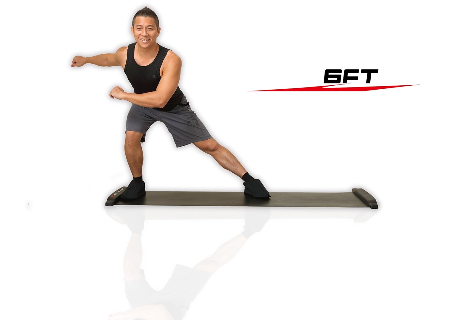 画像のように滑りやすいシートの上に専用のシューズを履いて使用します。滑りやすい特徴を活かして、シートの上でスケートのような動作で有酸素運動を行なったり、筋トレをすることができます。
